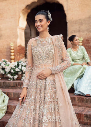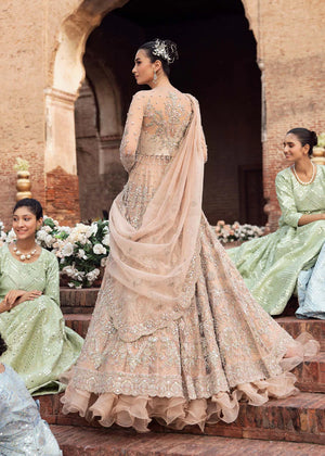Capture the essence of timeless beauty with this radiant bridal gown by Akbar Aslam. Featuring a delicate sweetheart neckline, this gown beautifully frames the décolletage, adding a touch of romantic charm to its overall design. Intricate embroidery flows gracefully across the bodice and cascades down the full skirt, creating a harmonious blend of elegance and tradition. The fitted bodice and full sleeves offer a flattering silhouette, while the accompanying dupatta drapes effortlessly to complete the look. Perfect for the bride who seeks to exude regal charm, this ensemble is a stunning balance of classic sophistication and modern allure.