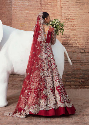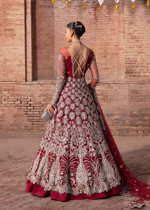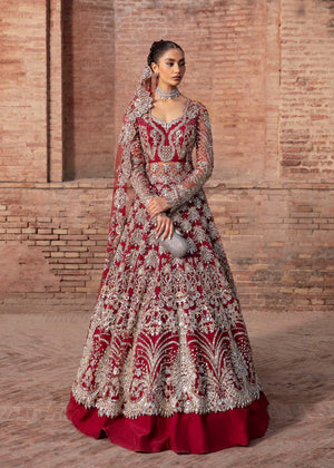 Make a striking statement with this luxurious bridal gown by Akbar Aslam. The intricate embroidery and hand-embellished details cascade across the bodice and voluminous skirt, creating a masterpiece of artistry and craftsmanship. The full sleeves add an element of timeless elegance, while the coordinating dupatta completes the ensemble with refined grace. This gown is ideal for the bride who desires to blend traditional opulence with a modern silhouette, ensuring a memorable and enchanting look on her special day