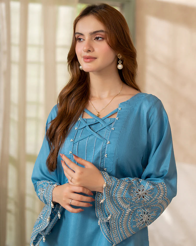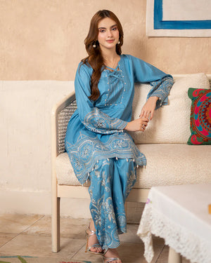 Blended raw silk Chikankari co-ord set – a perfect fusion of tradition and comfort! Intricately embroidered to captivate the senses, with a soft and breathable fabric that feels as good as it looks.