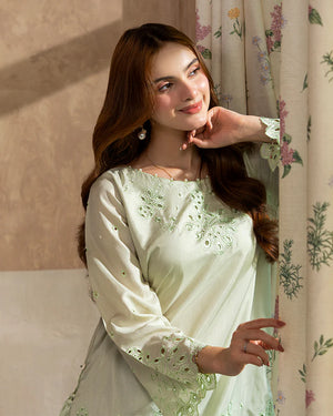 Blended raw silk Chikankari co-ord set – a perfect fusion of tradition and comfort! Intricately embroidered to captivate the senses, with a soft and breathable fabric that feels as good as it looks.