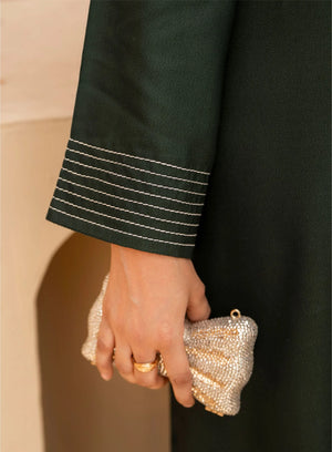 In Zohra, tradition meets contemporary elegance. Crafted from rich premium fabric, its embroidery flows like poetry — balanced, beautiful, and bold. The design evokes the grandeur of timeless fashion while